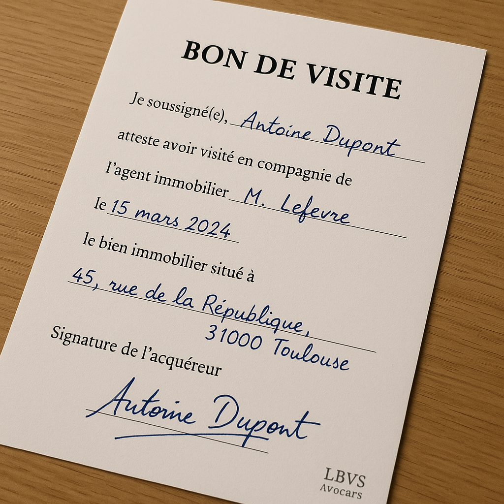 Rappelons que la signature du bon de visite par le vendeur permet de rapporter la preuve de la présentation de l’acquéreur au vendeur (pour pouvoir au besoin faire jouer la clause pénale), mais en l’absence du mandant lors de la visite, la dénonce de celle-ci doit impérativement être faite par tous moyens.